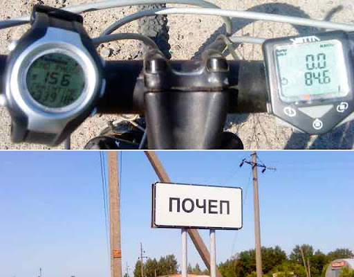Тем временем докрутил до Почепа. Время по пульсометру – 3:40 , пройденное расстоние 84.6 км. Московское время 9:30 – становится все жарче.