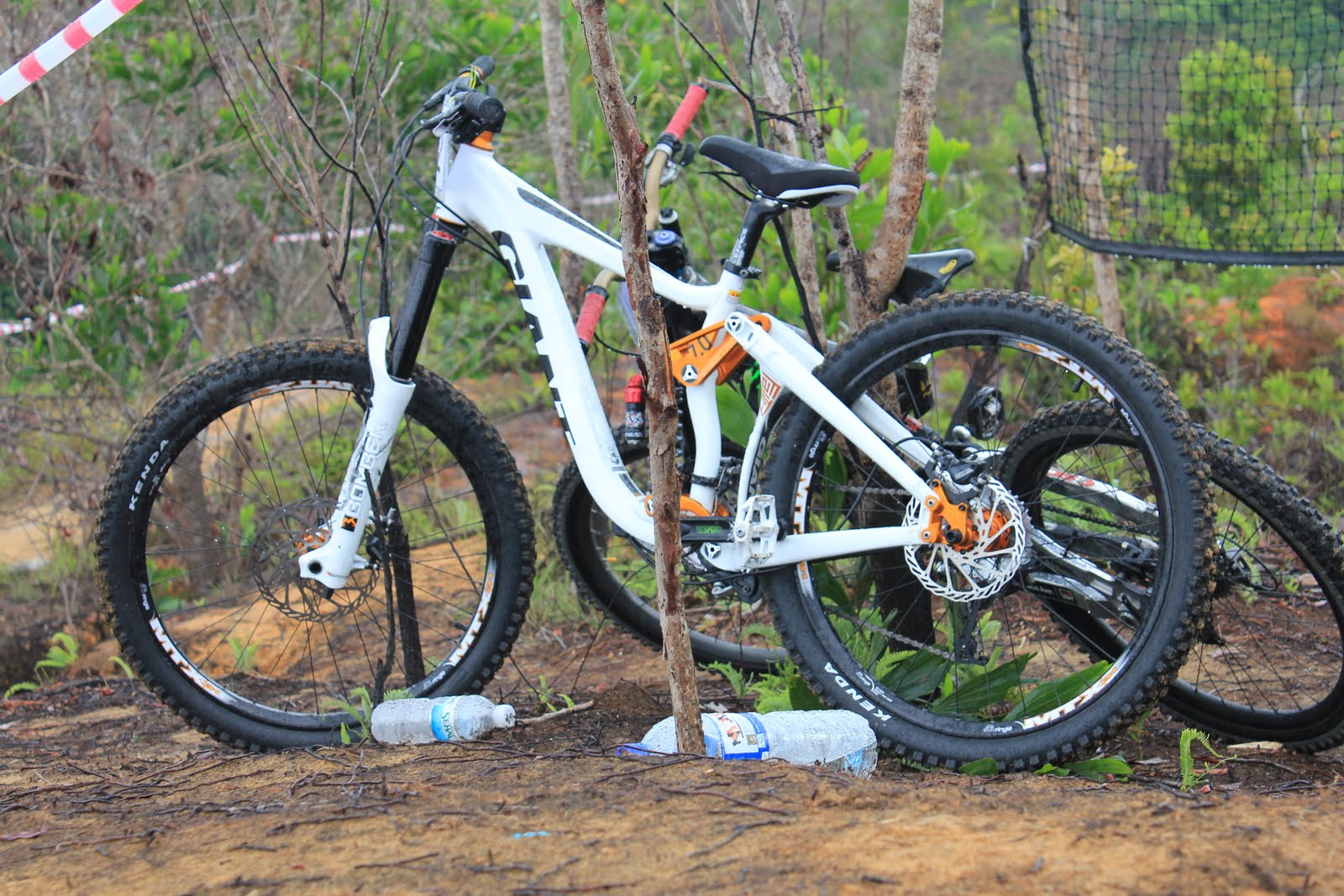 По комлиту байк почти сток,кроме тормозюлек задних, заменил Elixir 5 на Code 5. В Ближайшее время планирую заменить пружину,на более жесткую, уже в пути с chain'a. Ну и резину,на что-нибудь мене зубатое, переклюк задний,ну и грипсы Lizard Skins вкрутить,а то валяются уже 2 года)